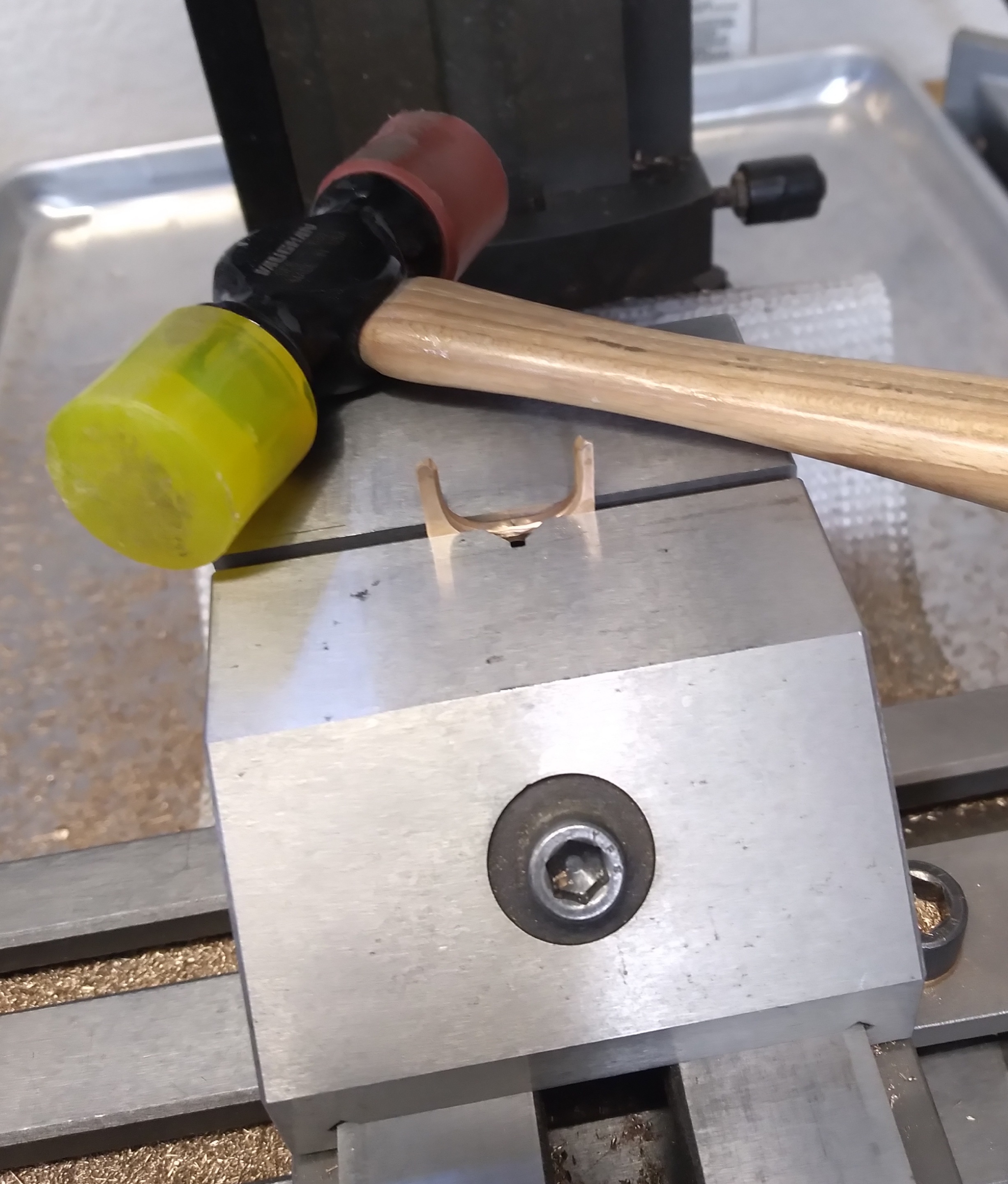 While forming in this way, the two arms of the part tend to splay outwards. They can be brought back by use of the vise.