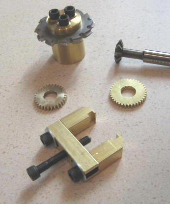 I bought the gear cutter from a supply house that was having a clearance sale. Made the arbor from 1 inch stock. If I had this to do again, I would use 642 bronze instead of 360 brass. The arbor has a 3/4-16 internal thread (to fit the mill headstock) and it was difficult to single point the thread with Sherline’s delicate tool. 642 bronze will cut much more smoothly.