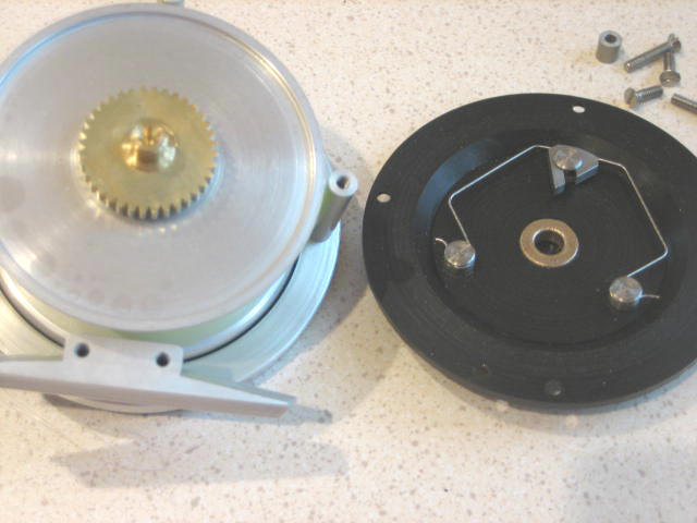 Here is the working mechanism, a ratchet and pawl drag. There is no way to disengage the pawl, but it is asymmetrical for more resistance to outgoing line.