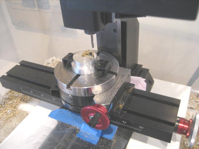 Here I am using a milling cutter to make notches in the rim of a ratchet blank.