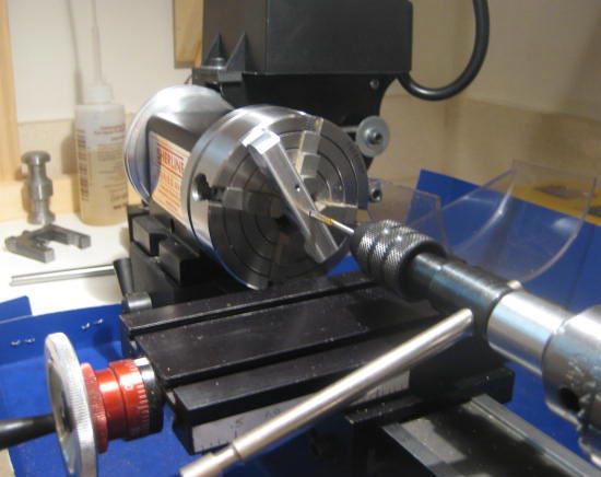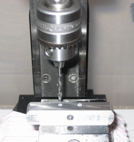 My Sherline mill has just a short vertical travel, so I find it easier to move to the lathe for tapping. A 4 jaw chuck holds the stock.