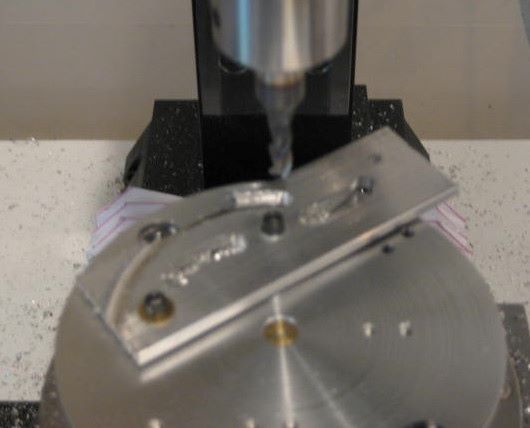 All the larger arcs are milled on the rotary table. The tool plate was carefully planned to hold the material in the correct positions.