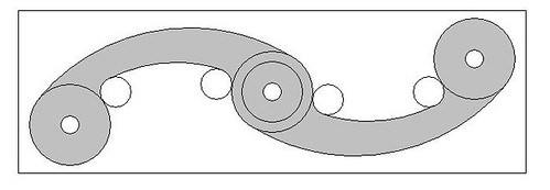 So back to the drawing board. Here I have reduced the diameter of the center circle, and moved one small inside radius to make the arm thinner. All curves are arcs of a circle.