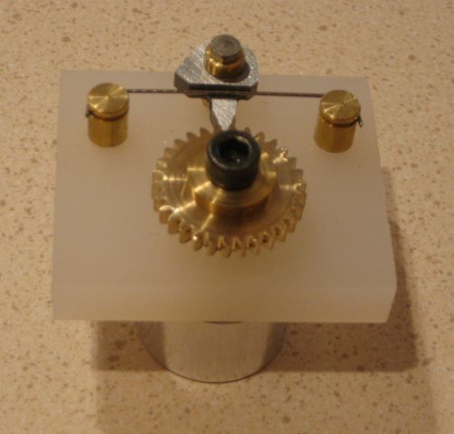 Some months ago, the pawl arrangement used by Brent came to my attention . Brent (eotr) is a prolific creator of new reel designs and a regular contributor to Rod and Reel Maker’s Forum. He is also a very helpful guy. His configuration uses a simple and short spring that appears to have no preload when the pawl is centered. By contrast, the springs in my first reels are preloaded but are more compliant so that the force on the pawl changes little with pawl rotation. A recent photo of my pawl arrangement is in the April 7, 2011 post to this blog.