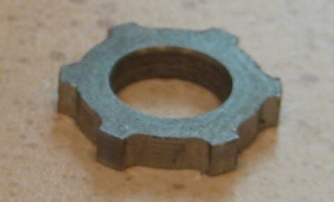 Here is a better picture of the rotor that I made of mild steel. It has 6 teeth so that 100 Hz corresponds to 1000 rpm. The data sheet for the sensor explains proper tooth size. This rotor is 0.72 inch diameter, and was profiled with a 1/8 inch end mill.