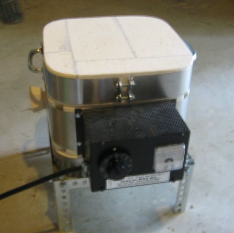 This was the first time that I used the kiln, so I kept a record of time and temperature for the operation. The heat control knob is marked OFF-1-2-3-4-5-6-HI. I think that it is a bimetallic control of the type used on electric ranges; it duty cycled the heater as a range control would.