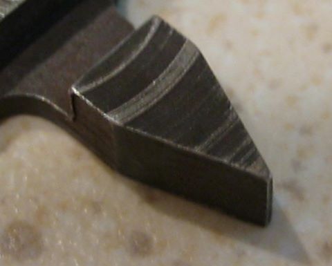 Here is the second stainless pawl (600F temper) before testing. The hardness of this part is Rockwell C 43.