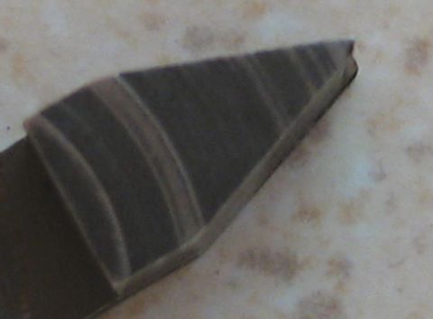 And here it is after a 15 hour run on the second stainless ratchet. The tip has lost material, but not as much as for the first stainless pawl. This suggests that the lower temperature temper may have helped.