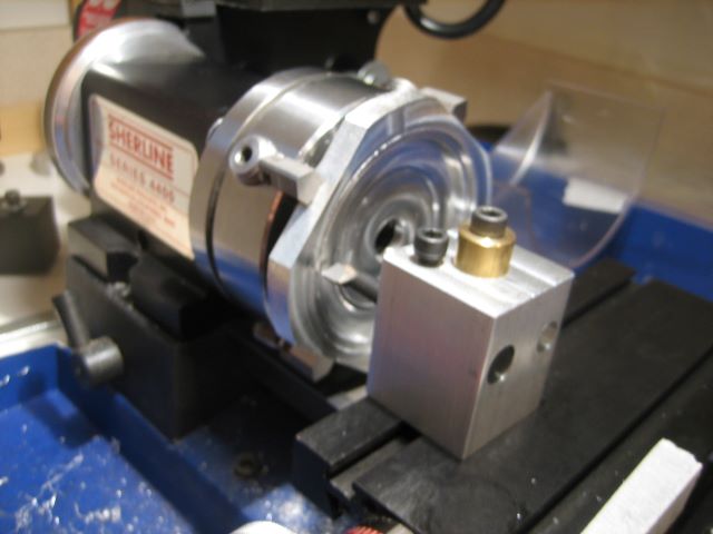 Here I am working on a rear end plate, holding a round shank boring tool in a home made tool post.