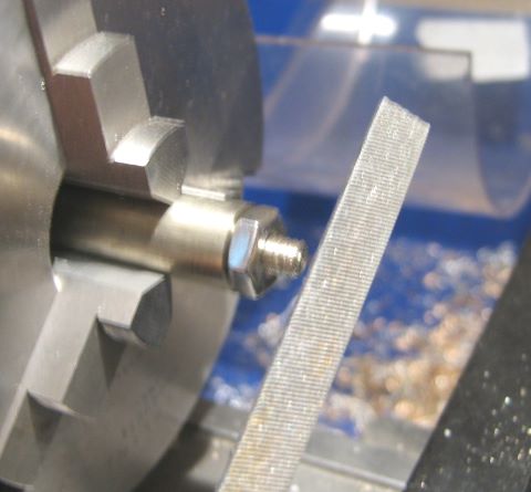 Remove the nut (properly forming the end of the screw) and there is the completed thread.