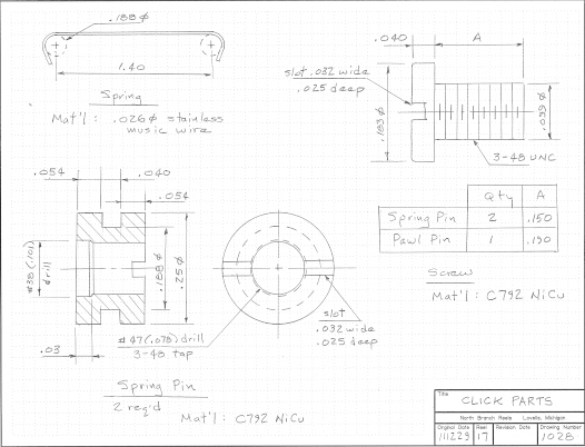 Many parts for this reel are borrowed from my earlier design. The notes that follow describe any modifications to those parts. You can purchase a hard copy of the plans at The Eclectic Angler, or just view the drawings (lower resolution) on this blog (7 May 2011). Drawings 1000 through 1018 are in the old plan set and 1021 through 1030 are given here.