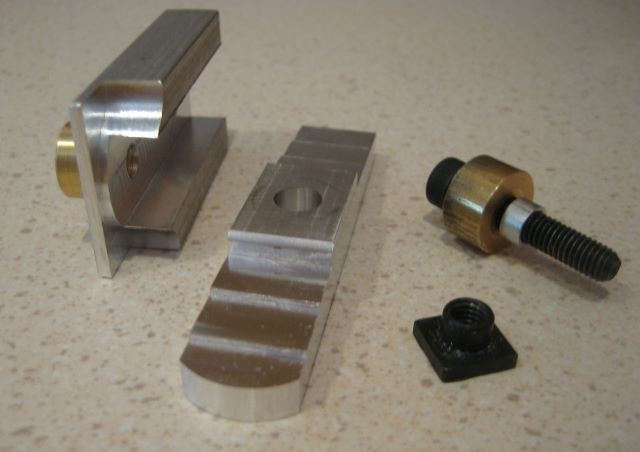 I have made about a dozen reel feet by now, but alignment to cut a radius at each end of the foot has been a recurring pain. I made a simple fixture to help with trimming to the right length, but it required auxilliary hold-down clamps and it was difficult to locate these where they would not collide with the end mill.