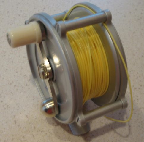 The photo below shows one of my reels with a 4.3 cubic inch spool. It has the 100 yards of SA backing wound on, plus a Scientific Anglers “AirCel” WF5F. The trendline says that the line should be allowed 2.8 cubic inches, leaving room for 1.5 cubic inches (136 yards) of backing. I would say that is about right.