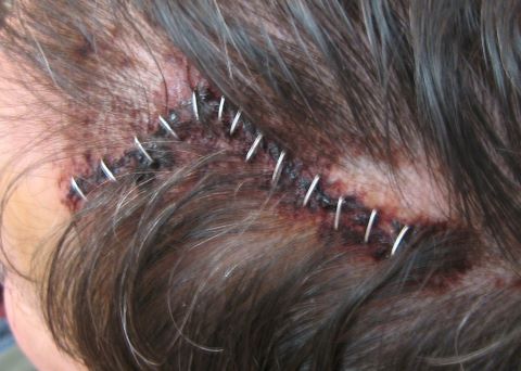 Whoa! So somebody saw you there on the asphalt and called for help? Those allergic reactions can be deadly; I’m glad to see that you made it with only a few staples as souvenirs. And, happily, you still have most of, if not all, your hair — so any scars will be hidden.