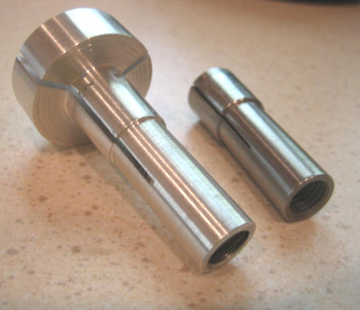 (photo: my pot chuck on left, Sherline milling collet on right)