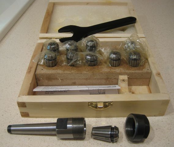 I have been getting by with just 4 collets: 1/8, 3/16, 1/4, and 6mm. Typically I use them to hold tools on the mill, but occasionally I have the right size to use one to hold stock on the lathe. So I was very interested when I discovered the ER16 Collet Set from Micro-Mark.