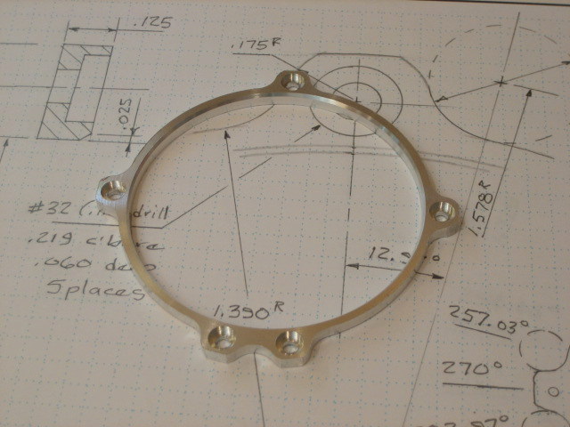 Some fine adjustment of mill axes is needed here so that each radius (i.e., each side of each lug) blends in smoothly with existing ring radii. The radii on each side of a lug do not have to continue across the top of the lug, as the lug tops will be later flattened.