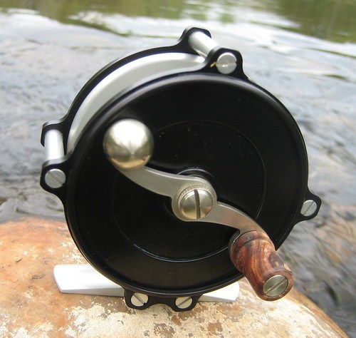 I have been making fly reels on “table top” machine tools. To achieve an acceptably low weight, many of the parts are aluminum. Other home shop reel makers often choose to leave their aluminum parts unfinished, allowing the aluminum to acquire a “patina” of natural oxides over time. I choose to anodize, which is also an oxide coating, but a thicker and more protective one. This gives me control of the reel appearance from the outset. Figure 1 is a reel with an clear anodize finish.