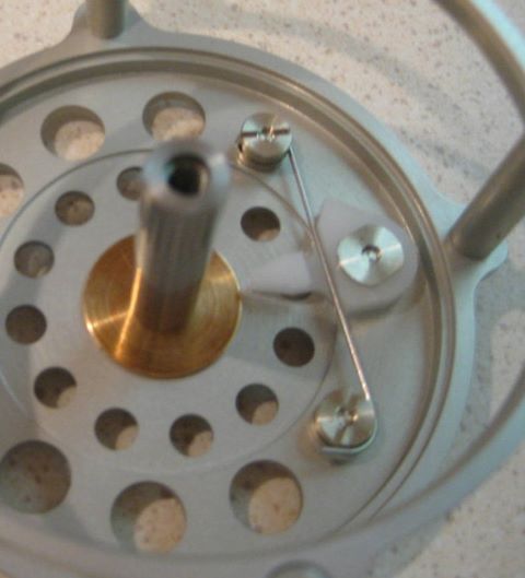 The open front end ring, lack of a crank, and lightening holes help to reduce weight. This reel is 4.2 oz. It hold WF5F and 100 yd. backing. It is 2.78 inch diameter.