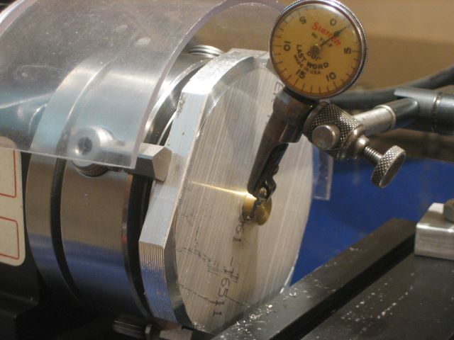 Step 9, 10, 11: Turn the part over and re-center. The center hole is the only feature available for alignment. The indicator is running on a brass part that closely fits the hole.