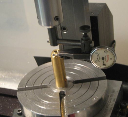 Step 9, 10, 11: Turn the part over and re-center. The center hole is the only feature available for alignment. The indicator is running on a brass part that closely fits the hole.