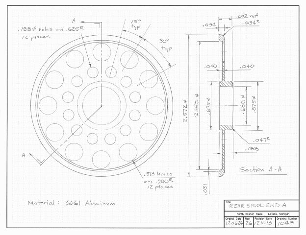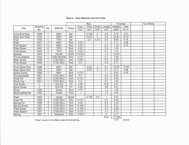 4 Dec 2012: For the smaller (B) reel, drawings 1039, 1047, and 1049 call out 0.313 inch diameter lightening holes. I think it is better to make these 0.375 diameter. You can see a comparison at the blog posting of 4 Dec 2012.