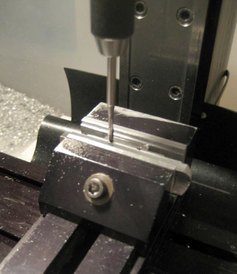 Here I am tapping a reel foot of 7075 aluminum. This operation proceeds with much less effort (i.e., back and forth working) than is required by the typical hardware store tap.