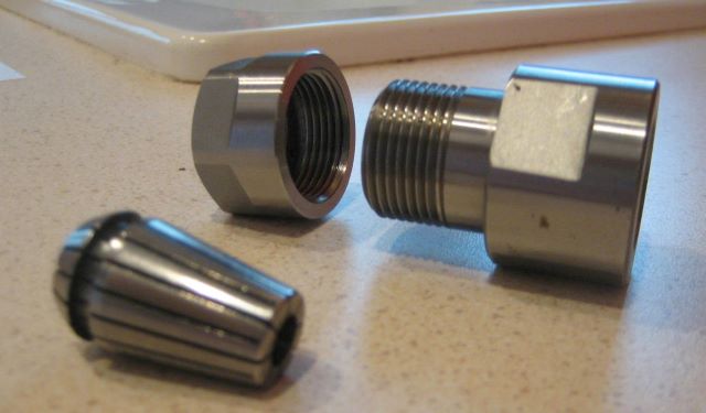 Hoping for better performance than I get with the MT1 holder, I ordered one. This is it, along with one of the collets from the original set.