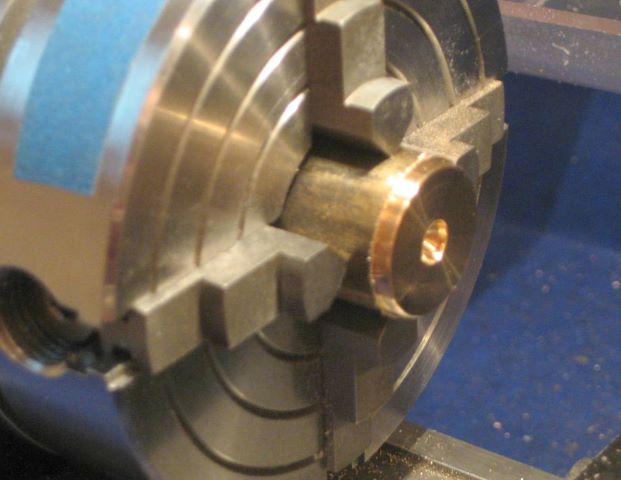 If the washer were thick enough, this chucking would be a good time to turn the back side. But I need a washer that is only 0.031 inch thick. It would flex if turned, making the washer thicker in the middle than at the edges.