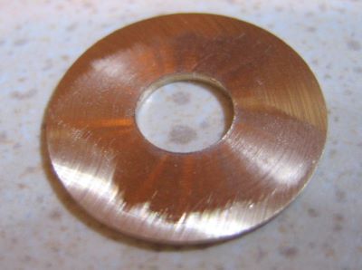 Here is a partly sanded washer, showing that the thick portions of the disk are the first to be abraded.