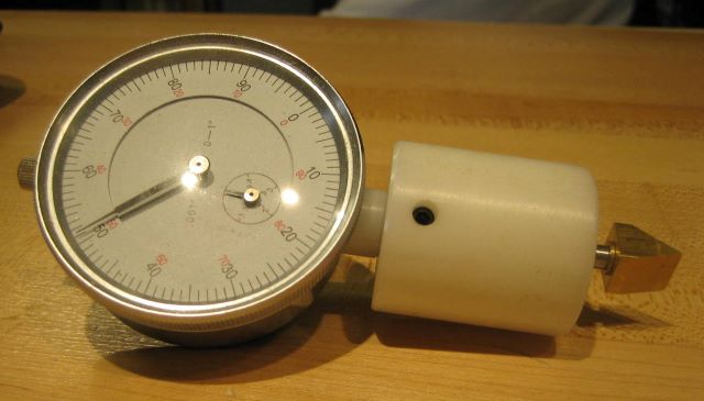 So I made him a special tip for his dial indicator, with sides sloping 18 and 36 degrees from vertical.