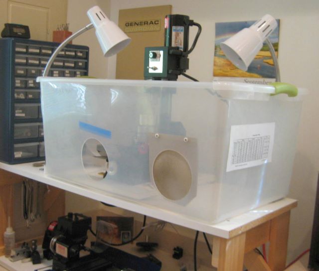 The sloping front panel is a piece of Lexan (polycarbonate) that lifts away while I am making setups.