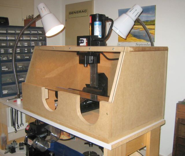 Now I have made a new enclosure of 3/4 inch MDF. The enclosure is heavier than the mill, and vibration is greatly reduced.