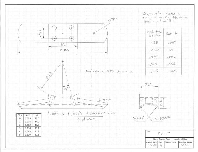 The foot is entirely made on the mill, except that I use the lathe to turn a sanding mandrel for the bottom surface.