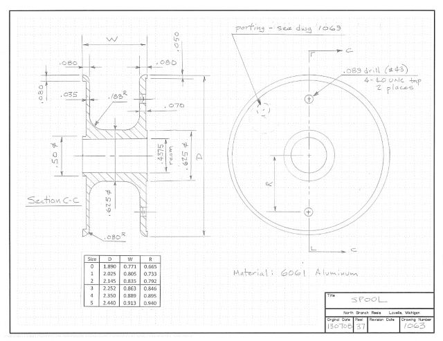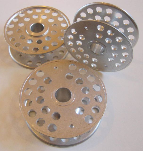 On fixed spindle reels like this, the knob and its counterweight attach directly to one face of the spool. So I have made the face flange thick enough to accept 4-40 screw threads.