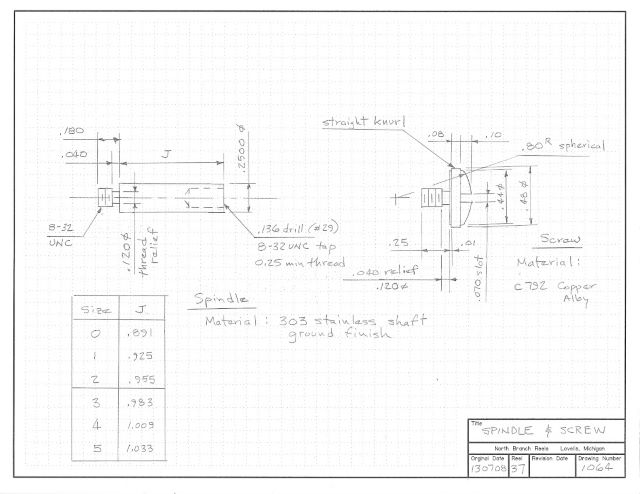 The screw that secures the spool is of c792 nickel silver (12% Ni) which is an excellent free machining material.