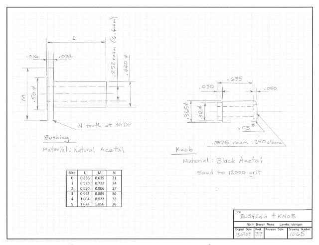 The bushing is pressed into the spool, and rides on a .2500 inch diameter spindle. For a good running fit, I finish the bushing bore with a “standard” 6.4 mm (0.252 inch) reamer. This is a close enough fit that it is necessary to ream a second time after press into the spool.