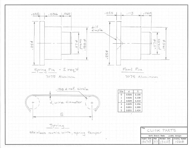 A drill point dimple helps to distinguish the pawl pin from the two spring pins.