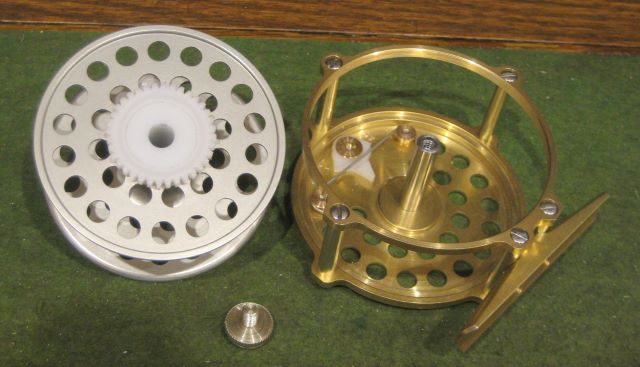 Regarding the lack of counterweight, the knob and its hardware are a total of 2.2 grams. Each porting hole accounts for 0.176 gram if done to both the front and rear spool flange. Since not all the holes left out would be at optimum radius, it is probably not feasible to completely counterbalance. But it would help a little. I am going to fish this reel a while and then decide if it needs an improvement in balance.