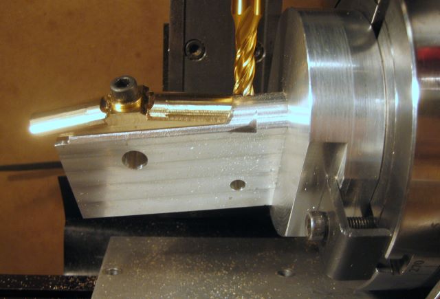 Here I am using the modified fixture to make a new foot for the Bronze Frame Reel. I mill the top radius with cuts in the axial direction.