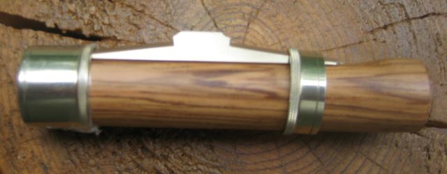 The CRNS is probably typical of many cap-and-ring seats. The wood insert starts as a rod of .64 inch diameter, and then is “mortised” on one side to create the .35 inch radius that fits the bottom of a foot. This “mortise” is .08 inch deep at the centerline. The reel foot (at the centerline) becomes .08 thick at about 0.3 inch from the end of the foot.