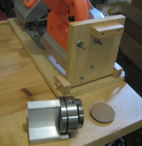 Here is a better view of the holder for the Sherline 4 jaw chuck. This holder fits in the drill press vise that is part of my hacksaw frame