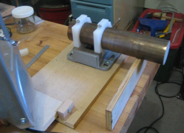 To hold the rod in the vise, I made two rectangular collars from UHMW.