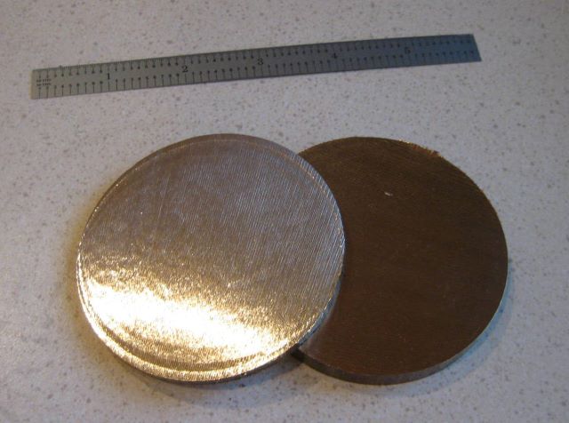 And here is the product, disks ready for machining on my small lathe and mill.