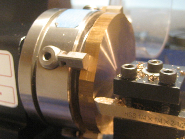 A 3 inch disk is a little too large to turn using the standard Sherline chucks; the backs of the jaws will hit the lathe bed. I milled 4 flats on the disks so that I could turn without using riser blocks.
