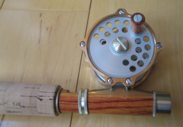 Just today I finished a bronze reel for the new rod. The wooden insert of the rod and the reel knob are both Brazilian tulip.