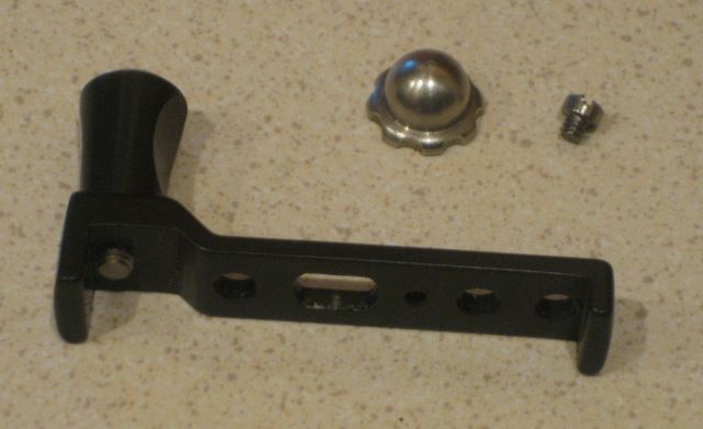 Here is the crank, a cap nut, and a locking screw for the nut.