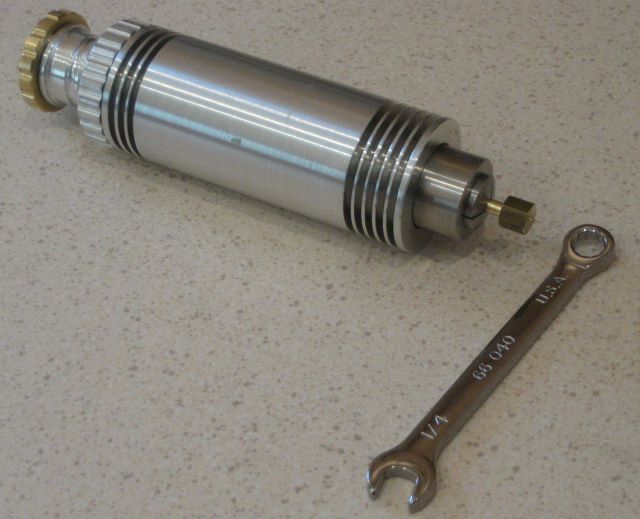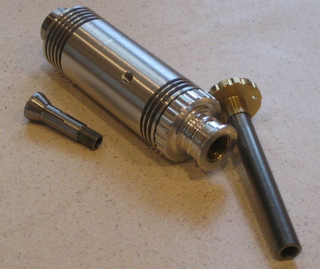 To make sure that I was getting the collet tight, I drilled two holes in the brass knob at the top, and made a “pin wrench” to fit.