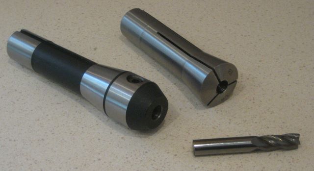 I have a lot of 3/8 end mills, so I also bought a 3/8 inch “end mill holder”. It has a set screw and so is suitable for HSS and cobalt steel end mills that have a flat. It does not help to hold a carbide end mill that has no flat.