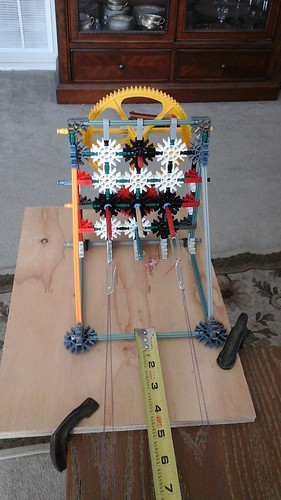 A week or so ago I was contacted by Ben, a resident of my adopted town of Rio Rancho. He wanted to make leaders but was not prepared to make a machine like mine. So he improvised with the kid’s building set K’Nex. Here are 3 pictures of his furling head.